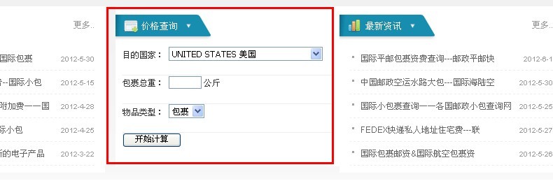 寄件人可通过中国邮政网在线查询国际包裹资费(中国邮政官网价格略高,无折扣)http://zf.chinapost.com.cn/index.do;